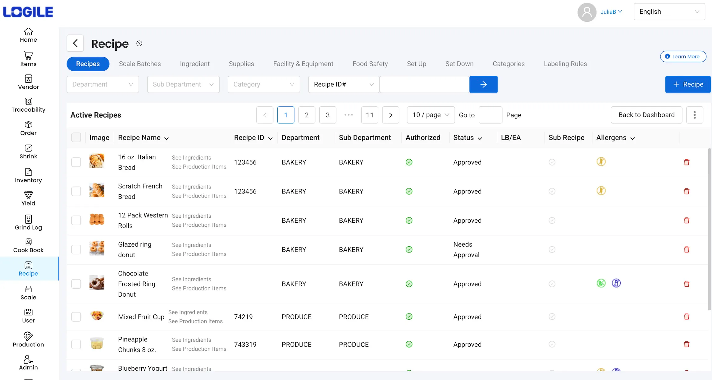 Ensure every item is prepared, labeled, and handled correctly every time. Logile centralizes recipes and production steps, delivering them directly to associates through a guided, tablet-based cookbook experience.
